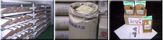 、山形県産里のほほえみ種大粒大豆、 自然塩、味噌仕込み樽等の販売も行っております。